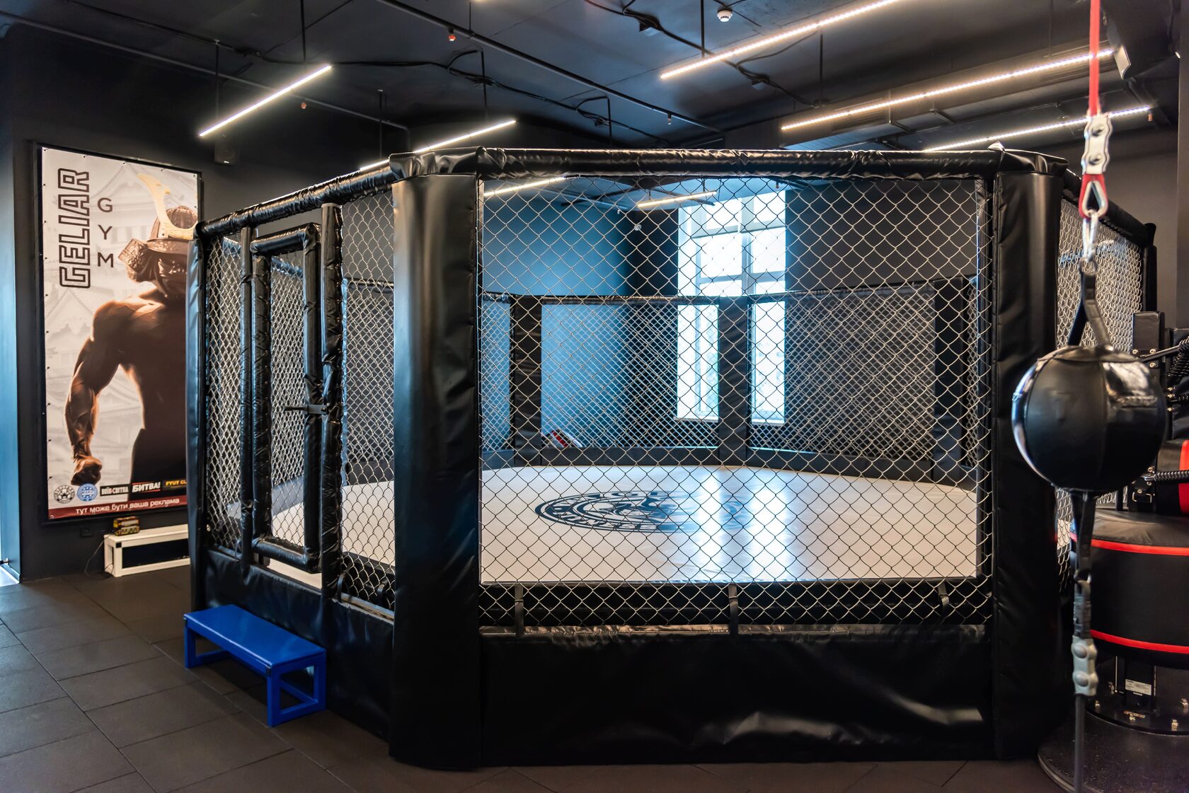 В зоні для єдиноборств встановлений октагон (клітка ММА), та м’який захист стін для запобігання травмування.